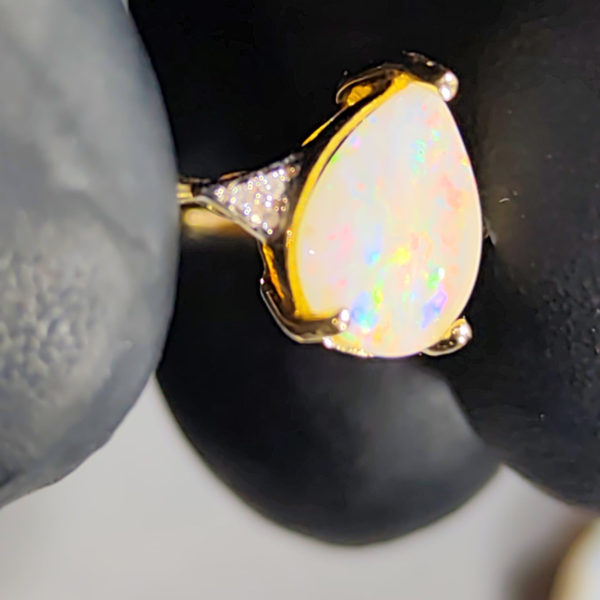 Bague or jaune 14 carats opale australienne et diamants